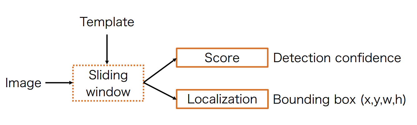 For every position, measure the distance(or correlation) between the template and the image region(See Fig 3):