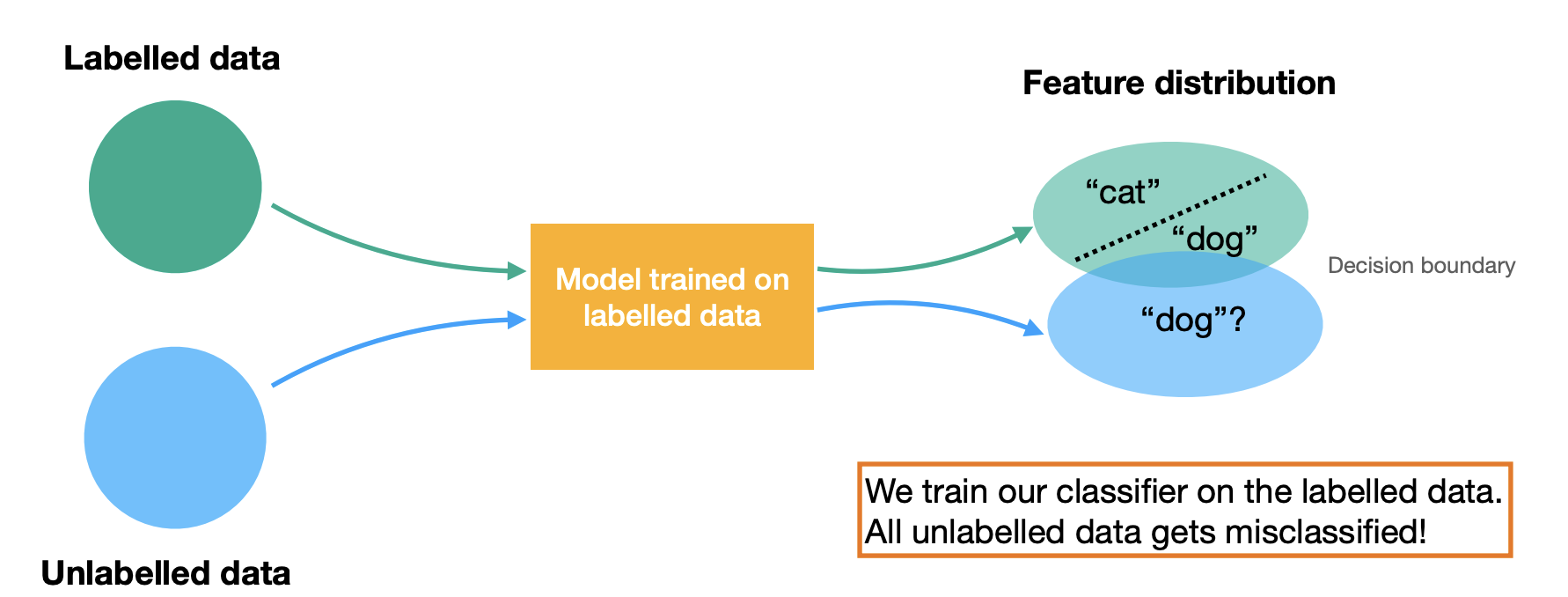 This translates into disjoint feature distribution of a model trained only on the labeled data: