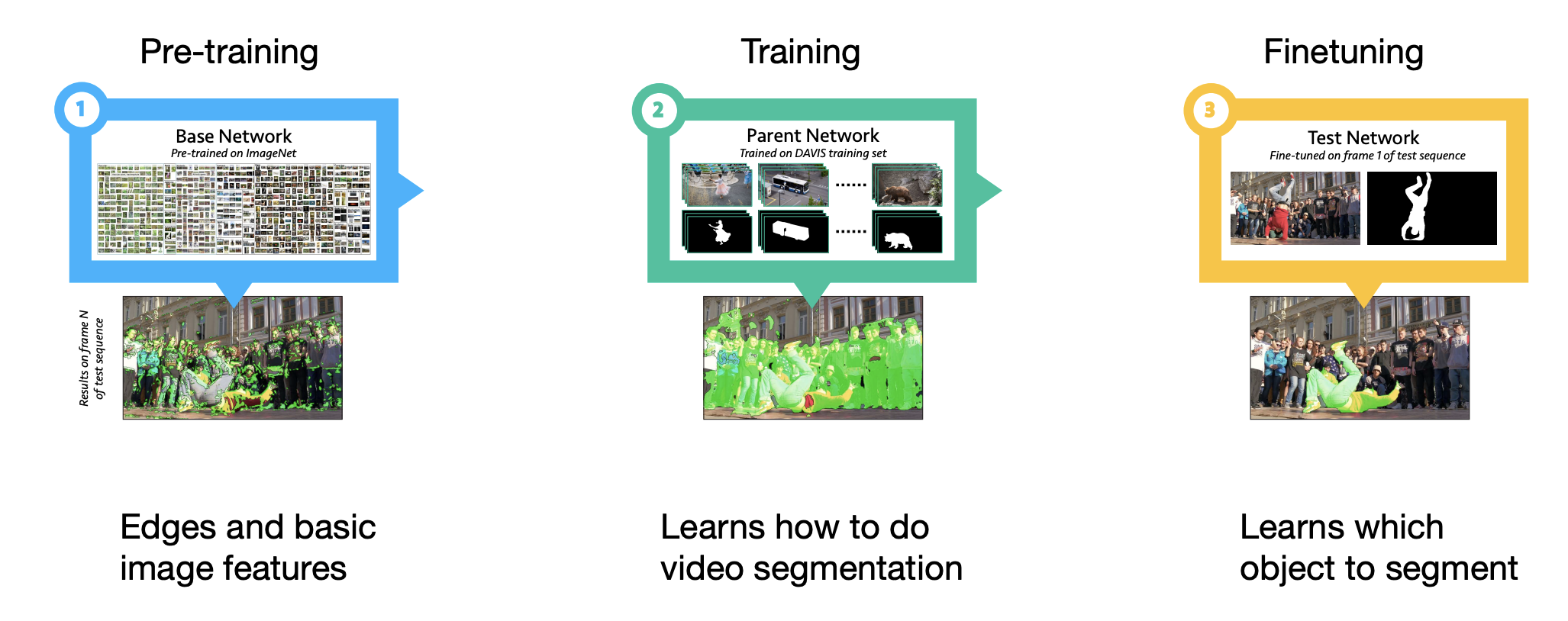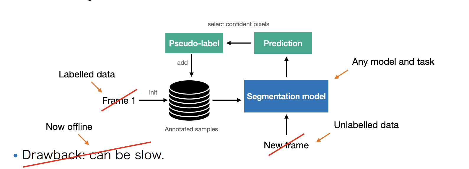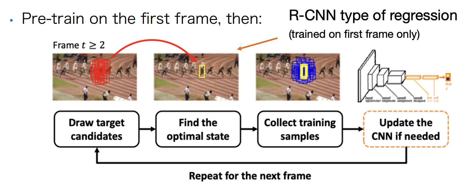 Online adaptation: Adapt model to appearance changes in every frame, not just the first frame.